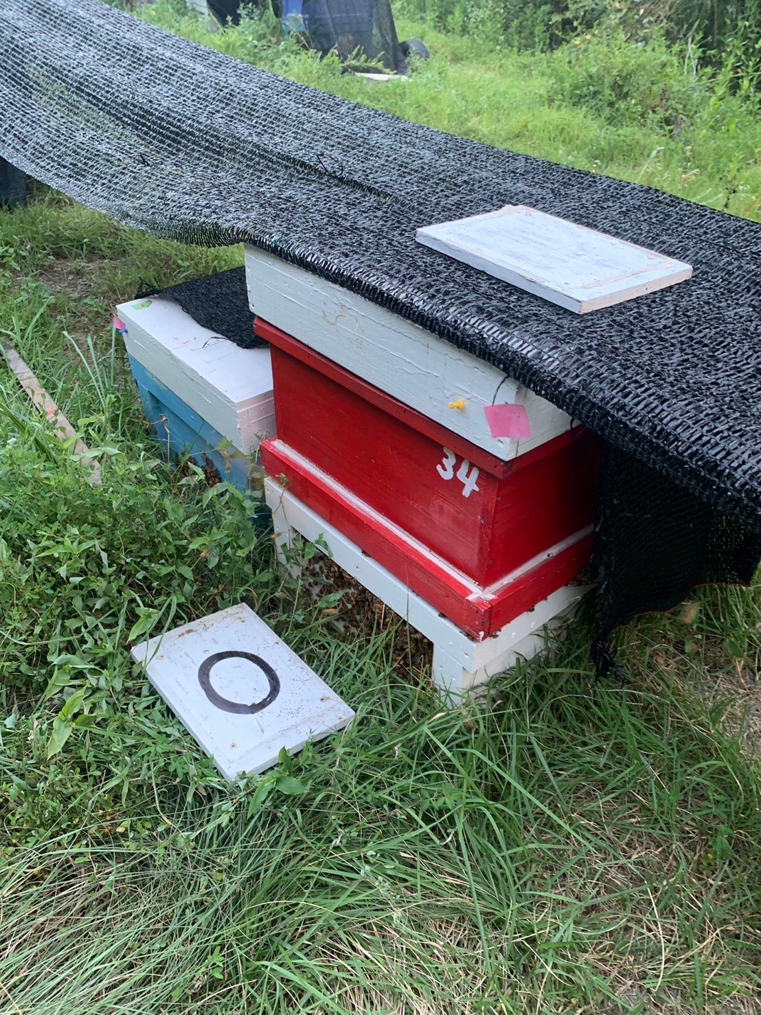 ほとんどの巣は一段の巣箱で、二段目の巣箱はシートとの空間を作るために置いています。