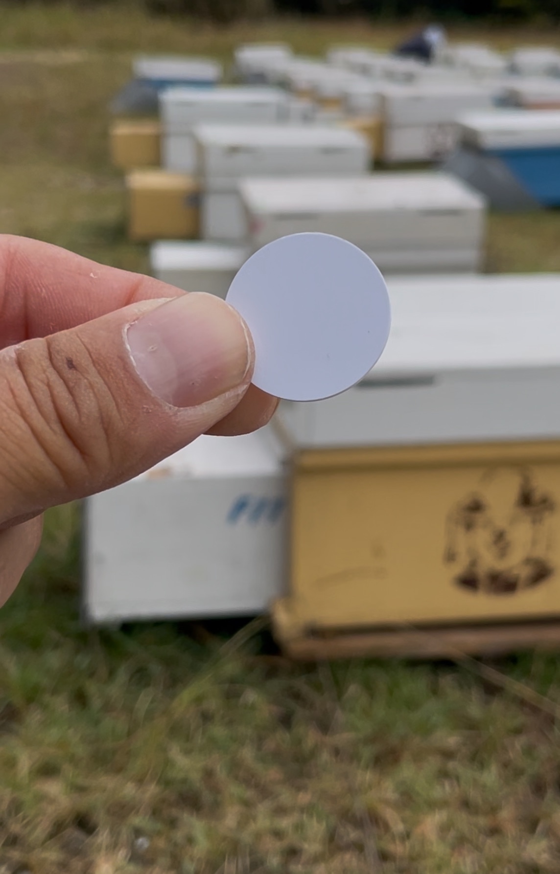 この NFCタグを巣箱の上に取り付けて