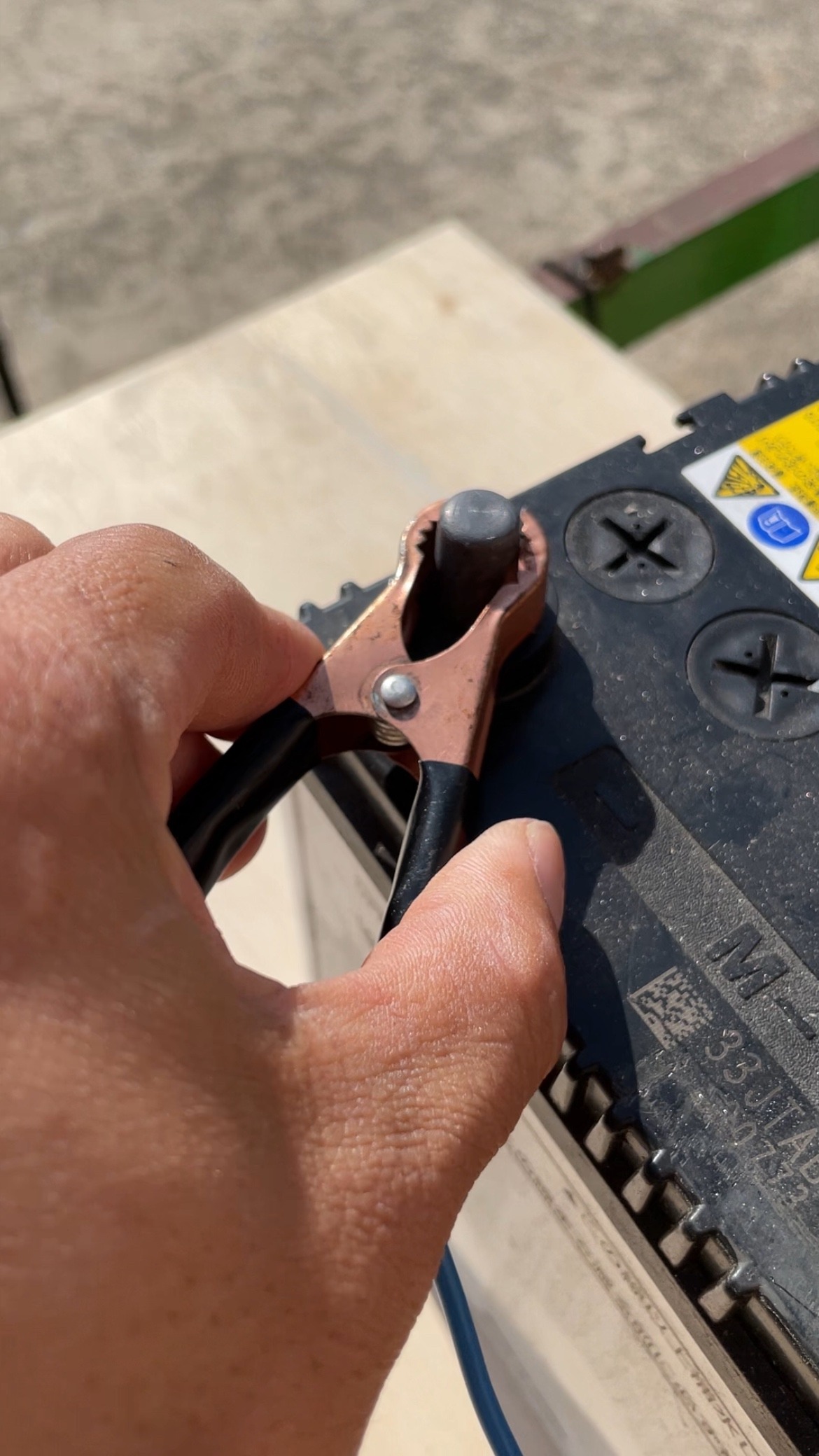 バッテリーに線を繋いでおきます。
