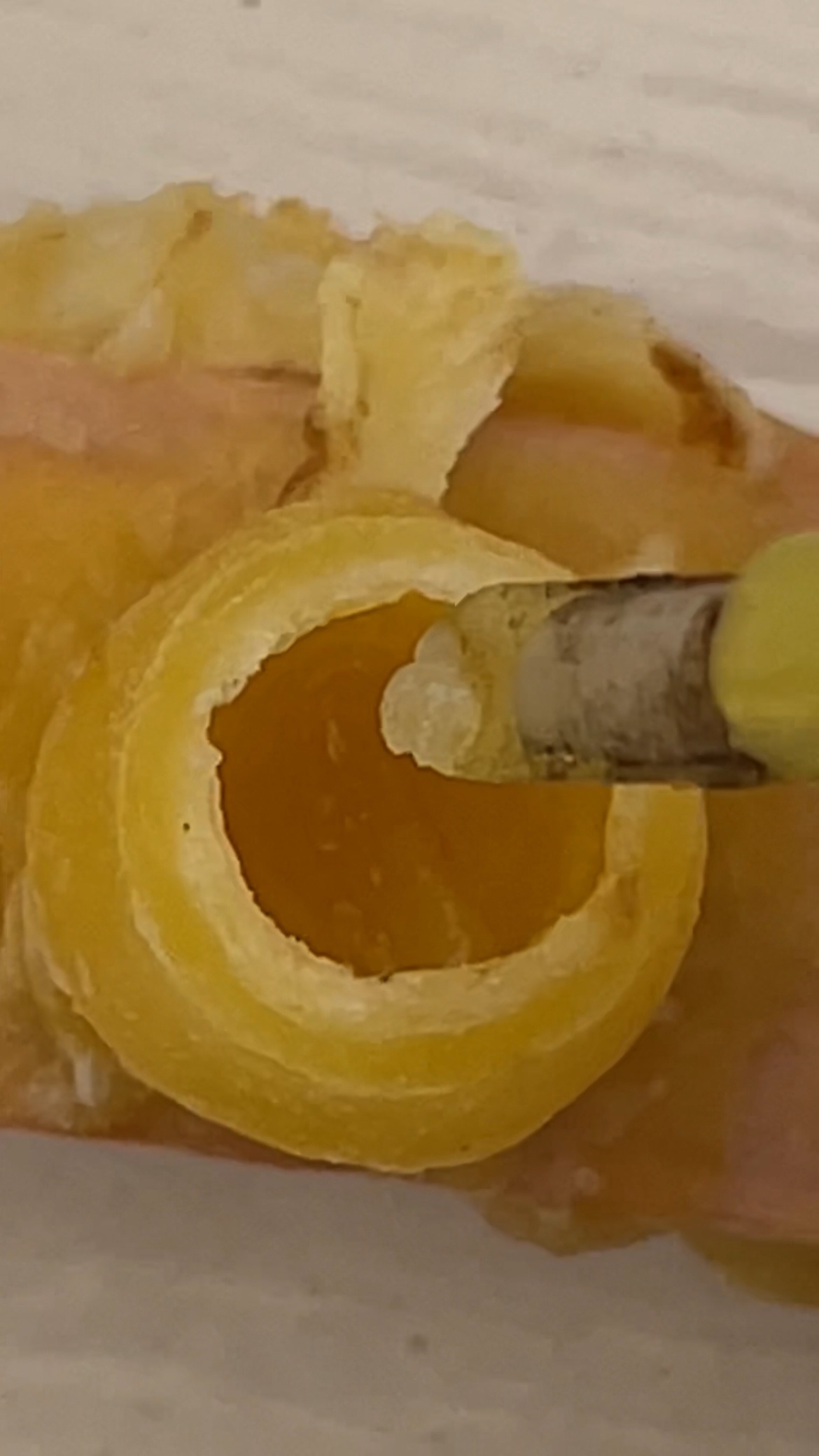 数日すると落花生のようなサナギになり、すべてのカップから女王蜂が生まれてきます。