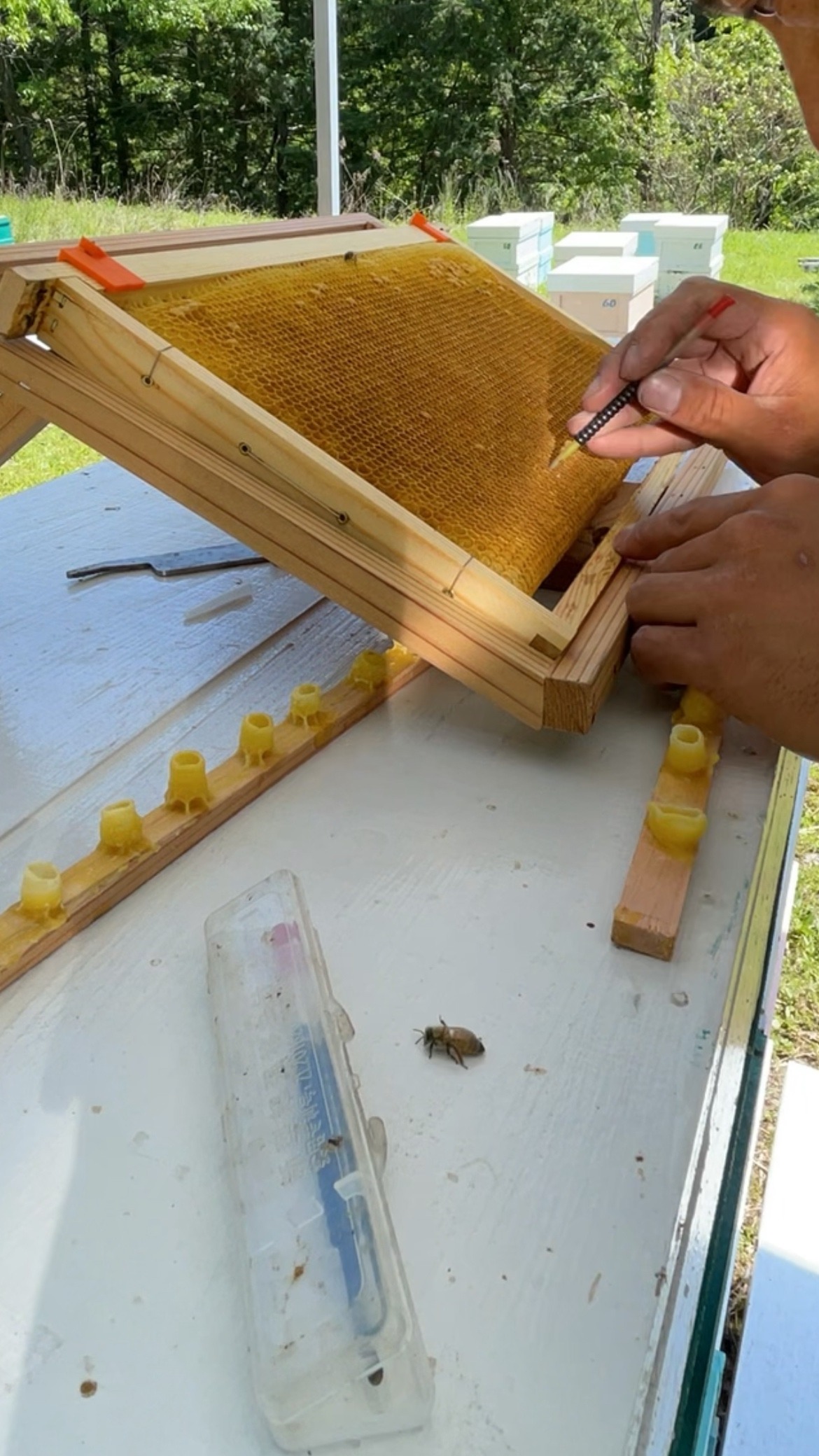 今日は女王蜂を人工的に作るために、移虫という作業をしました。